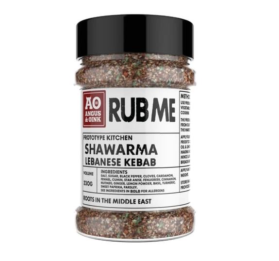 We give you Shawarma. The story behind this Shawarma seasoning is simple. The Angus & Oink creators lived in the Middle East for two years drilling for oil, but as they were exploring the back streets and markets, they uncovered the local delicacies. Shawarma! Like a burrito, it’s a wrap snack, light lunch or late night treat. Grilled chicken or lamb usually served inside a flat bread, but accompanied by chips, a little salad and a drizzle of garlic sauce and hot sauce. Shawarma seasoning is full of Middle Eastern promise. Spices from India, North Africa and Europe collide head on to create tonguetastic flavours. Use this one on lamb and slow cook it for pulling, whack into a flat bread with the above ingredients and you have yourself a Shawarma. Grill lamb chops or lamb shoulder kebabs and smell the air around you thick with fragrance.