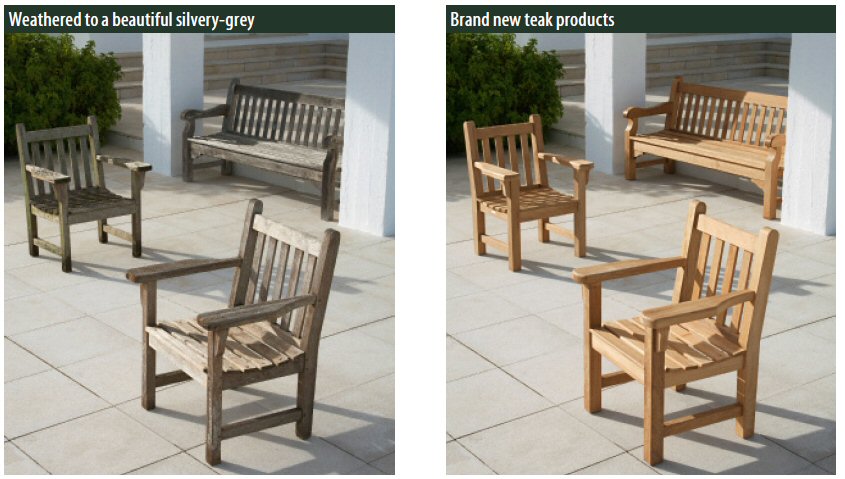 For centuries these special qualities have made teak the preferred choice for marine decking and construction, hence it is considered the premium timber for outdoor furniture. Teak wood will naturally weather from golden brown to a silver grey colour.