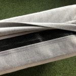 Sunbrella-Rain® Fabric has an additional barrier finish applied to the INSIDE of the fabric which is 100% waterproof. This membrane in conjunction with “Aqua-Seal” self-swelling thread which seals the stitch holes when wet, and moisture vents creates the ultimate outdoor cushion.