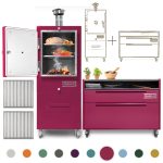 In a choice of gorgeous funky colours – or mix it up with different colour ovens & worktable islands, or cheeky bases