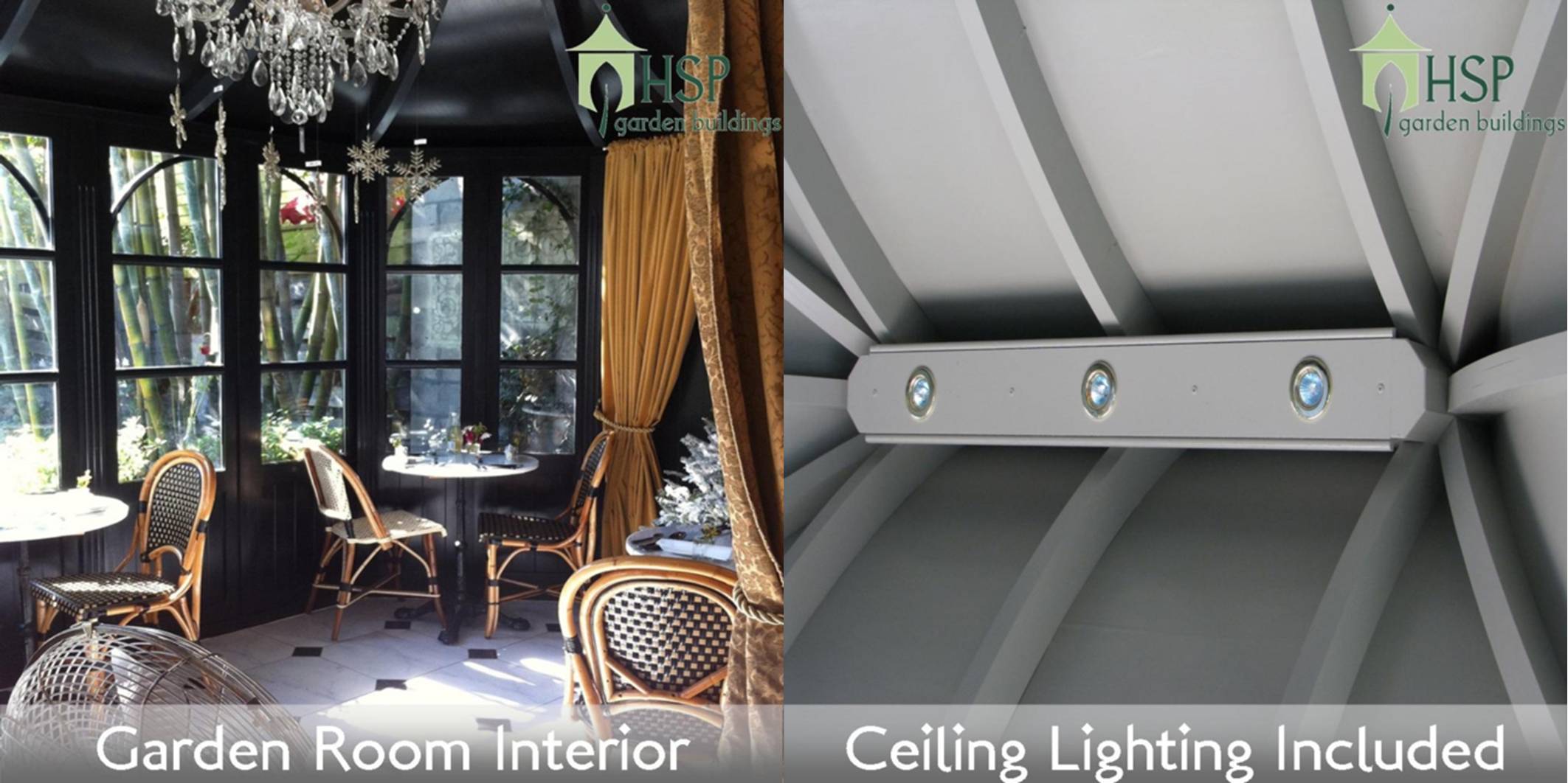 We’ve included 3 double power sockets, rebated in to the walls and ceiling lighting at the top of the roof inside, with a switch by the door. All you need to do is connect our single electrical feed tail to a suitable supply, all the cables & connections are hidden away from sight in the natural cavity of the walls, under the floor, and under the roofing material to the lighting – nothing is seen from the inside or out, making a really tidy finish.