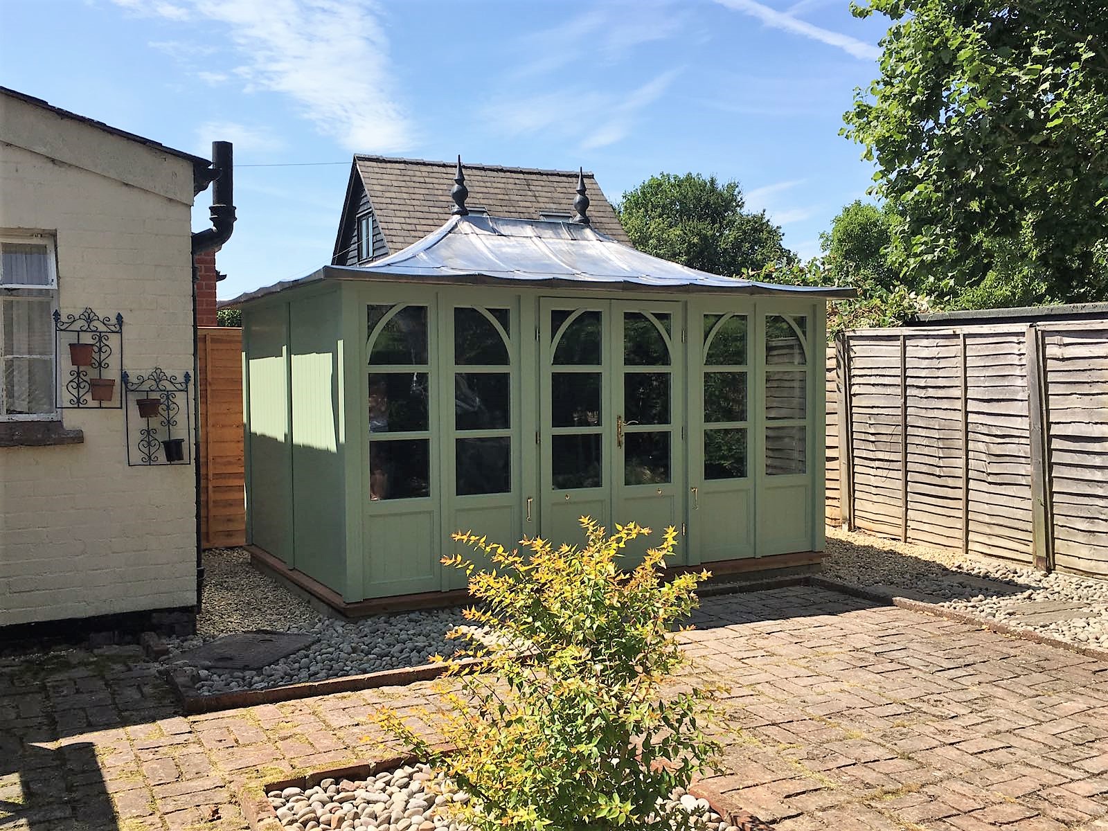 We have three building on display here at Birstall in Leicestershire, a 3m Octagonal Lavenham, “D” Shaped Flat-Back design, which is a “Chelsea” at the back, with a “Lavenham” Half Octagonal front. A custom built rectangular summerhouse without a back, we use for one of our garden furniture showroom entrances. And a Huge bespoke structure, with glass lantern roof, coffee machine & w/c facilities. Please call and have a chat with Jordan on 0116 267 7091 for more details, or come over for a coffee and take a look at our display building, paint finish samples & available flooring options.