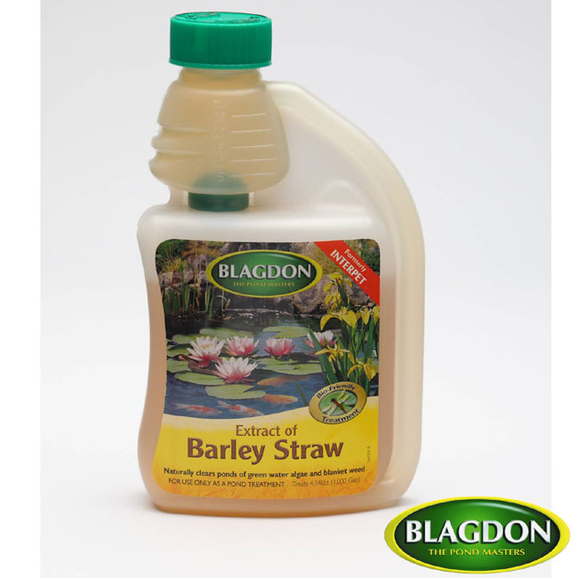 - Barley straw, floating on the pond, has been used for many years to help with the problem of algae. Contain the straw in a mesh fabric, adding it at the rate of 50g to a square meter of surface area. Remove the straw when it turns black. Liquid barley straw is also commercially available. Its decomposition produces a by-product that breaks down under sunlight killing algae.