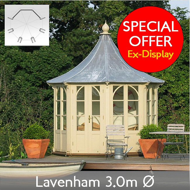 At present all ex-display building have been sold. New orders delivered and assembled £ 12,980 for the 3m Lavenham with genuine lead roof. We have an offer of free insulation at present until Feb 8th, saving over £1,400.