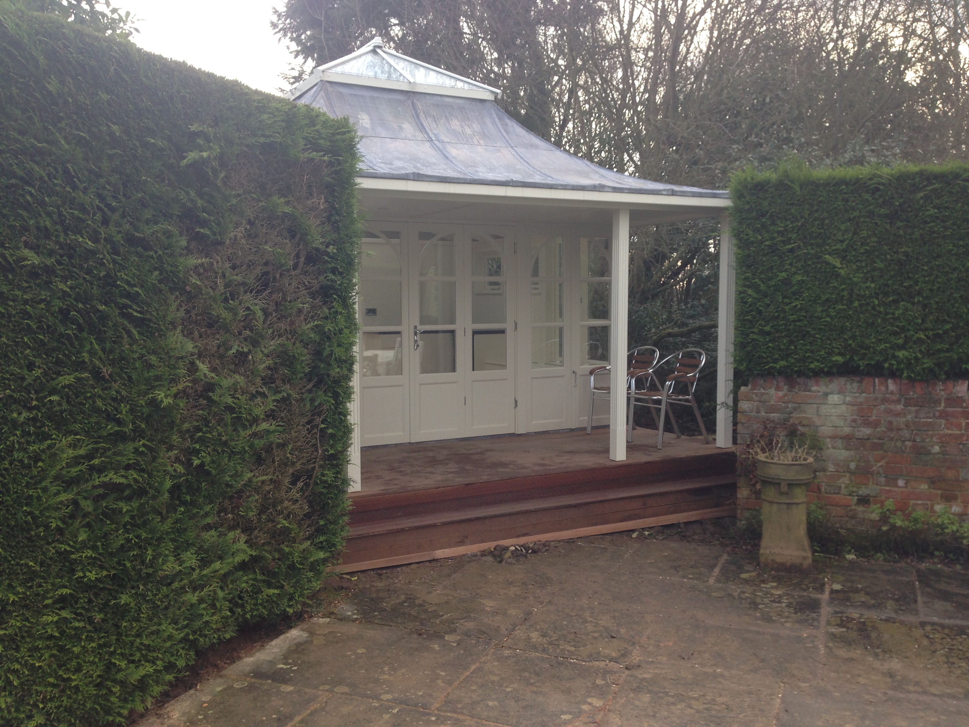 We are delighted to share with you our latest summerhouse installation, a gorgeous 9.9 x 3.2m lead roof custom deigned garden building. Kindly filmed by our client over three days. The crew were fantastic, and made a terrific job of the installation.