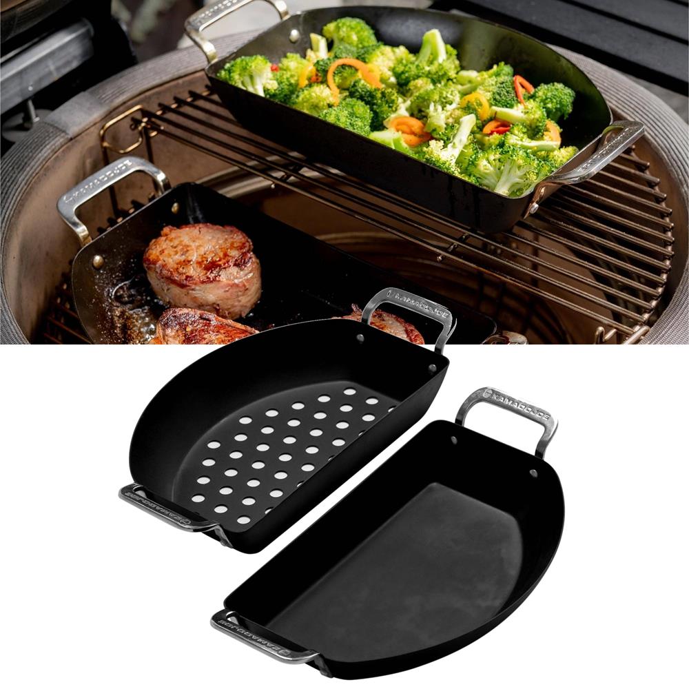 Kamado Joe KARBON STEEL BBQ Cookware IN STOCK » kamado-joe-karbon-steel-half-moon-pan-set-