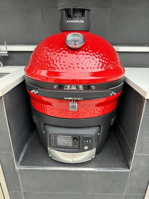 Yes you can, the only difference here is you’ll need to create an air intake aperture directly underneath your grill, to allow cool air to reach the bottom of the grill, in a Classic Joe Konnected this hole need to be 30cm diameter & for a BIG Joe Konnected 42cm Diameter – Ceramic feet are not compatible with Konnected Joe and are not to be used. Please call 0116 267 7091 if you would like to discuss building-in a Konnected Joe, we have stunning Kamado Tables & All Weather Shelters to suit both size Konnected Grills & more details should you wish to build you own.