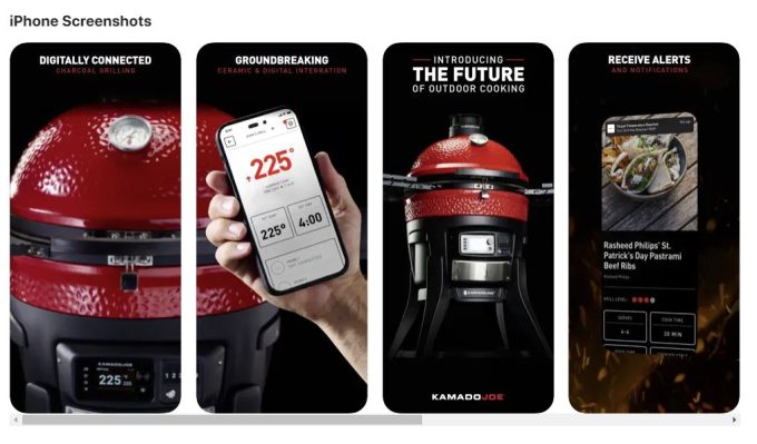 Take your grilling to the next level with the Kamado Joe app. Control your grill from anywhere, set temperatures from 107-400°C (225-700°F) allowing for “Slow & Low” Roasting & Searing. monitor up to four meat probes, (1 probe included) receive alerts, and discover new recipes. The app ensures you have complete control over your cooking, even when you’re away from the grill