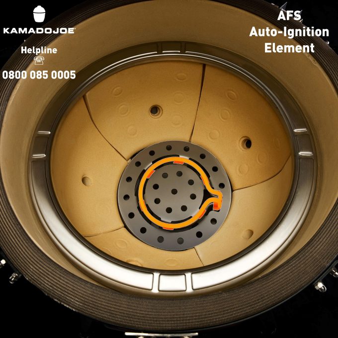 With Konnected Joe, you can leave charcoal in the fire bowl – so you grill is ready to use, then simply set your desired temperature on the front display screen , or the App. and press the AFS Automatic FireStarter button – thats it ! The element underneath your charcoal will ignite the charcoal for you, and the integrated fan will supply the correct amount of combustion airflow to get you to you required cooking temperature FAST – faster than manually lighting with traditional fire-lighters & a match, as the bellows effect is all dome for you. This combination of fan & element is fast, accurate & you can wall away from the grill and get on with preparing your meals, in the knowledge in 15-20 minutes your Kamado is ready to use + you’ll never overshoot your dialled-in temperature, as the fan will regulate the whole process. It’s a game-changer.