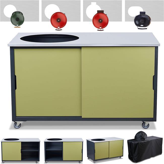 BIG4SPACE Kamado BBQ Tables With Storage » big4space-kamado-bbq-table-olive-green-xl