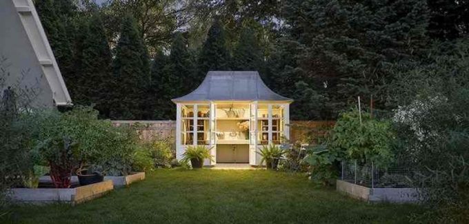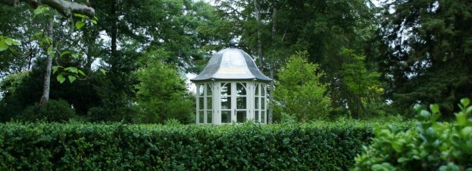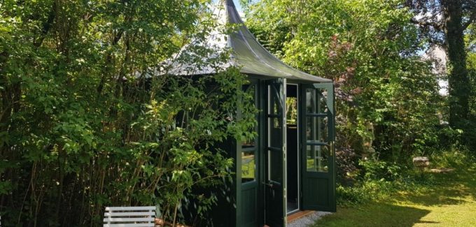 An old Scottish word used to describe a shelter for gardeners on highland estates, we have recreated a small square structure with a swept Cathedral style roof, perfect for a cozy garden hide-away