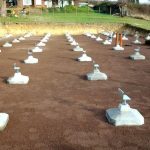 If the site cannot for whatever reason, accommodate a concrete base, where tree roots need to be protected or logistics for materials is difficult, we offer a “Foundation Pad System” a known building technique – where pre-cast concrete pads are laid in a calculated arrangement, which support a bespoke timber framework, with adjustable steel threaded feet. This creates a sturdy raised platform, ready for the building.
