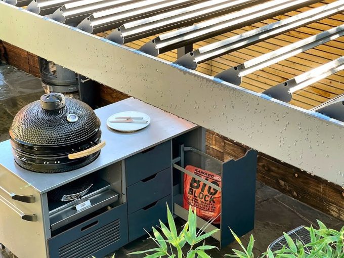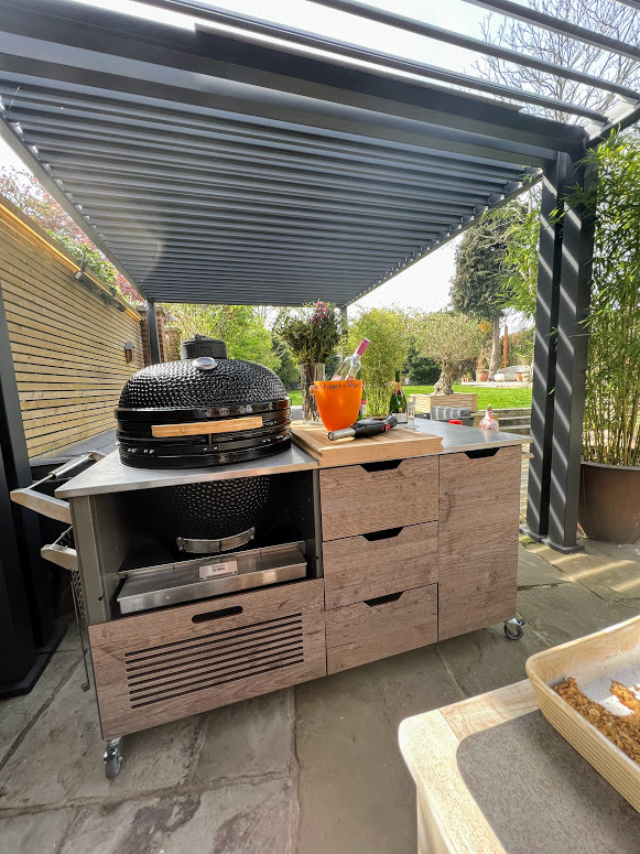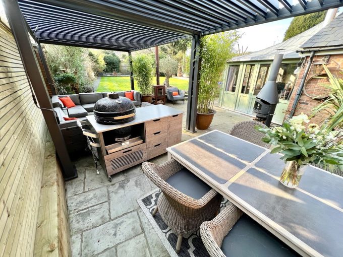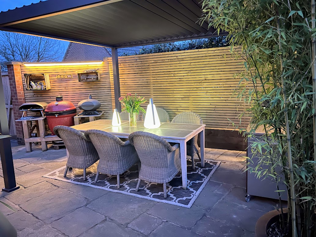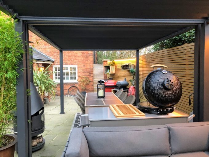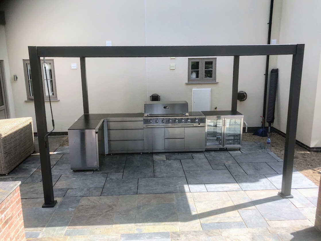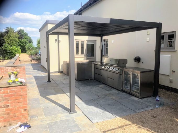 2 No. 4 x 3m Pergolas – Installed end on end – Forming 8 x 3m Outdoor Kitchen | Dining & Chill Area