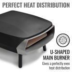 The pizza oven’s unique U-burner ensures that the heat is distributed evenly, unlike with a traditional rear or L-shaped burner, which will always bake the pizza unevenly unless you are constantly rotating it when it is in the oven.