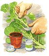 AUGUST ... Reduce watering melon plants as the fruits begin to ripen. All kinds of pelargoniums and many other ornamentals can be propagated from cuttings now. Make sure the stock plants are strong and healthy. Begin sowing hardy and half-hardy annuals for growing-on over winter. Examples include phlox drummondii, schizanthus, salpiglossis, larkspurs, calendulas, stocks and any choice, compact garden favourites. It pays to buy the dearer varieties for pots. Pot on arums, calceolarias, cinerarias, primulas and other pot plants sown earlier. Top dress tomatoes and cucumbers to encourage new basal stem roots. Take leaf cuttings of foliage plants like begonias, and of ornamentals like saintpaulias and streptocarpus, if they can be kept in slight warmth over winter. |