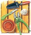 APRIL ... There should be a great deal in flower now from bulbs and pot plants like calceolarias and cinerarias sown last year. Keep the temperature down to prolong the display and prevent wilting - the sun will now be quite strong. Shade the glass with blinds or paint-on shading. Ventilate when weather permits, but beware of high winds. Be on the lookout for common pests like aphids and whitefly and keep insecticides at hand for immediate action. Do not use insecticidal smokes if conditions are warm and very sunny. Watering will have to be generally increased. Avoid exposing seedlings to direct sun and make sure they never dry out. Prick-out seedlings and pot-on promptly. Water-in with Cheshunt compound to prevent damping off. Grapevines growing under glass will be producing new laterals. Tie to wires. Pinch flowering shoots back to two leaves after flower truss. |