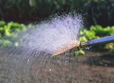 As you begin to spray, gradually increase the angle of the can to the surface being watered so that sufficient water pressure is maintained to force water out of the fine holes in the brass spray plate.