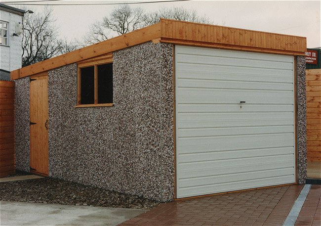 | 16ft x 8ft 6in Pent Roof Garage with stone front, 7ft steel up and over door, flat facia, personal door and side window. |