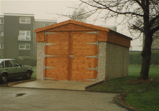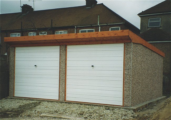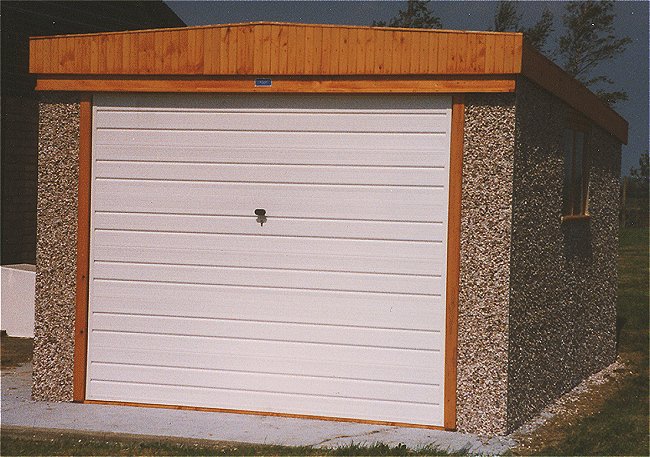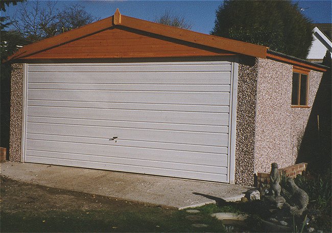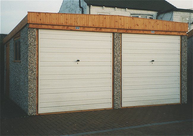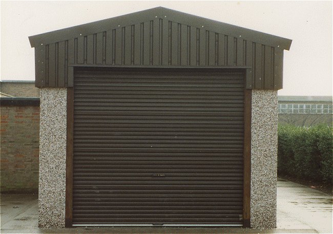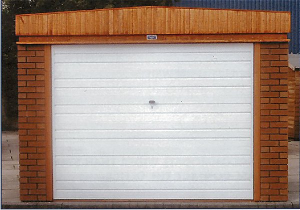 A 9ft 6in wide concrete garage with genuine brick faced front pillars. |