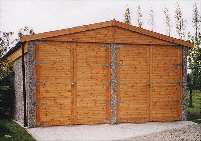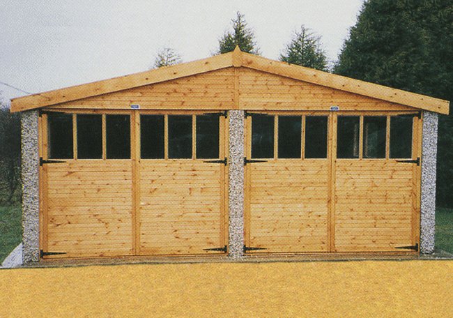 24ft x 18ft 6in Apex Roof Double Garage with stone front, 8ft eaves and two pairs of 7ft 9in solid wooden doors. |