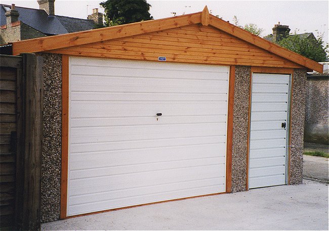 | 16ft x 16ft 6in Apex Roof Double Garage with stone front, 14ft steel up and over door and side windows. |