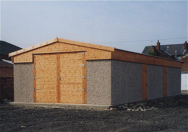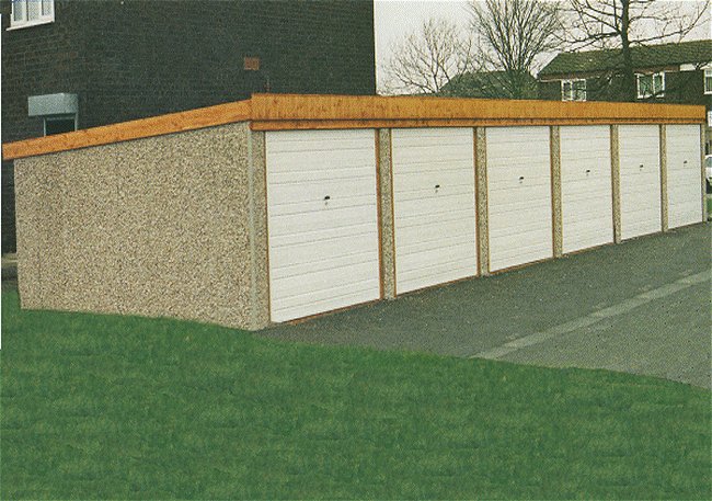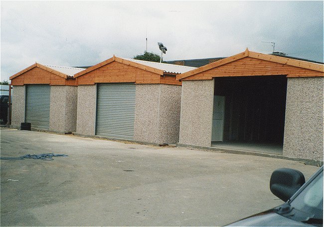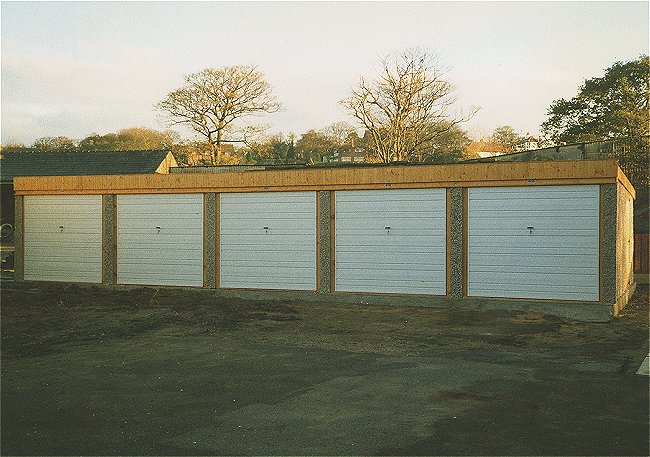 16ft x 40ft Battery of 5 Garages with stone front and 7ft steel up and over doors. |