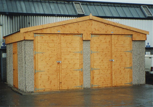 | 20ft x 10ft 6in Apex Roof Garage with stone front, 10ft eaves and 8ft x 9ft 6in high solid wooden doors. |