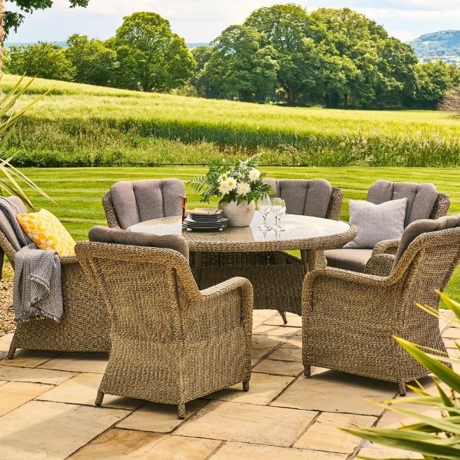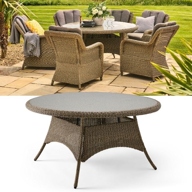 Elevate your outdoor dining experience with the Arlington Weave Round Dining Table. With its generous 1.5m diameter, this table is perfect for gathering friends and family for relaxed meals in the garden.