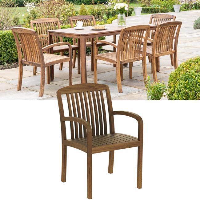 The beautiful Bolney armchair is made from strong Acacia timber. The corners at the top are smoothly curved with narrow and elegant slats as back support. All products in the Bolney range come with a 5 year warranty.