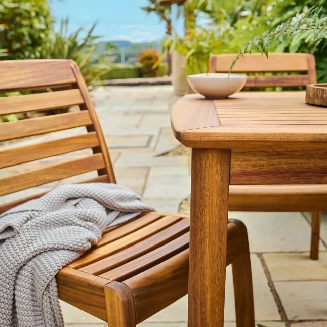 Crafted from premium oiled Acacia, the Cotswold Stacking Side Chair combines durability with timeless elegance. Part of the exclusive collaboration with the National Trust, this chair complements the Cotswold Collection's range of outdoor tables, offering a cohesive and refined look for any garden or patio. Its robust construction ensures long-lasting performance, making it an ideal choice for enhancing your outdoor living space with expert craftsmanship and natural beauty.