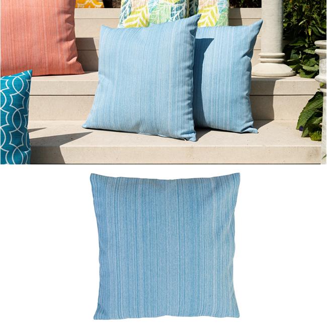 These cushions are single piped and come with ties for securing to the furniture. The fabric is resistant to shrinking and staining.