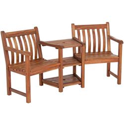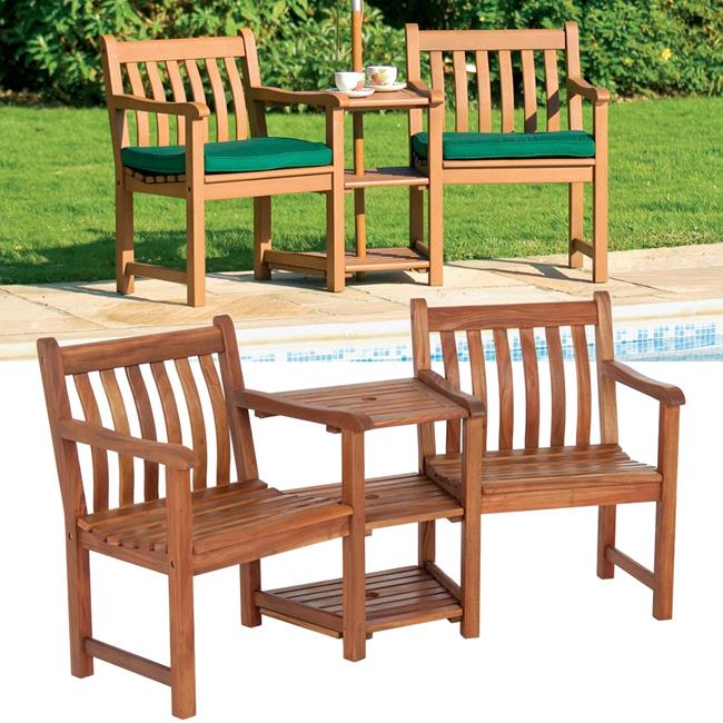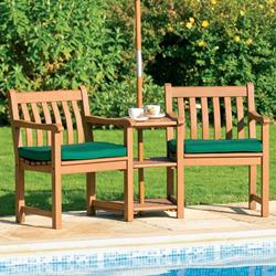 What more could you and a loved one need, than this Companion set in the beautiful Broadfield range? The two broad, comfy seats are connected with a middle table, which comes with a hole for a parasol. The table has two shelves, plus the table top, so there’s plenty of room for your drink, your book, your phone and your snacks! The slats are thin and elegant. The wood is dense and a gorgeous deep brown colour, which is largely free of knots. This well-built companion set will provide you with many years of joy.