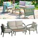 Relax in refined comfort with the Genoa 4 Seater Lounge Set - a stylish combination of modern materials and natural textures. This set includes a 2 seater sofa, two armchairs, and a matching coffee table, making it perfect for laid-back outdoor living.