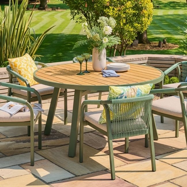 The Genoa Round Dining Table brings a soft, contemporary touch to your outdoor dining space. With its smooth circular shape and clean lines, it's perfect for more intimate gatherings or compact garden layouts.