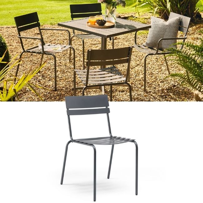 The Oslo Metal Side Chair is built from powder-coted steel for durability and weather resistance, making it a smart choice for both indoor and outdoor use. Its slim, modern frame offers reliable support and a clean, minimalist look that fits seamlessly into a variety of spaces. Lightweight yet, sturdy, it's a versatile seating option that pairs well with any table in the Oslo range.