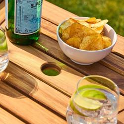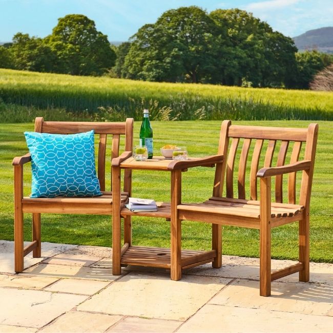 Designed for comfort and convinience, the set features two connected chairs with a central table, perfect for morning coffees, evening drinks, or simply relaxing side by side. The mid-table includes a parasol hole, making is easy to add shade on sunnier days.