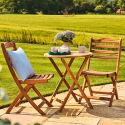 Designed for intimate outdoor moments, the Tea for Two Set from the Redcliffe collection combines traditional craftsmanship with timeless charm. Made from solid Acacia hardwood, it features the wood's naturally golden-brown tones and attractive grain, enhanced by a smooth, hand-sanded finish and protective coating for added durability.