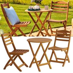 This compact set includes two comfortable folding chairs and a central table - perfect for enjoying morning coffee, afternoon tea, or a quiet catch-up in the garden. Its elegant design and sturdy build make it a practical yet stylish choise for patios, balconies, or cosy corners.