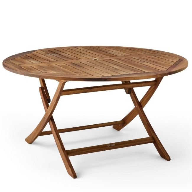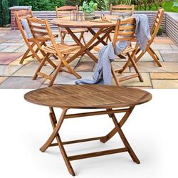 With a generous 1.4m diameter, this round table comfortably seats four to six people, perfect for garden lunches or evening gatherings. The folding design allows for easy storage when not in use, making it ideal for flexible outdoor spaces.