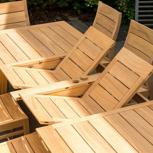 This Scandinavian-inspired Tivoli range is all about precise angles and elegant slats. Roble wood is typically used in more traditional styles which is why this range is so unique. The elegant frames are sleek and contemporary, yet still equally strong and durable. The colour of the wood is both warm and natural, with a beautiful, visible grain. And after a perfect day entertaining friends on your new Tivoli garden furniture, you can sleep with a clear conscious too, because the whole collection is responsibly sourced from sustainable forests.