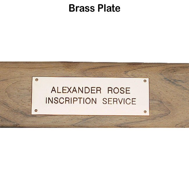 Alexander Rose offers an engraving service with three options, brass plaque, stainless steel plaque and direct engravings onto their furniture. Their brass plaques offer a more traditional look for your inscriptions. The stainless steel plaques provide a more contemporary look with a silver shine, they will not rust. A direct engraving will be carved directly into the timber by a computer guided engraving machine and if left untreated will mellow down along with the bench to a silver grey finish.