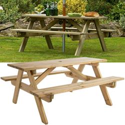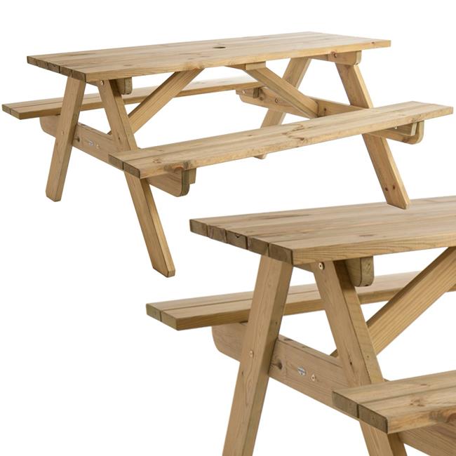 We know you’ll have a fun day with this affordable picnic table, a lit BBQ and plenty of friends. It’s 5 ft wide, which is large enough to seat 4 and it’s made from solidly constructed pine softwood which has been treated for outdoor use. There’s a parasol hole in the middle too for those scorching days when you need some shade. If you’re after a larger pine picnic table, we have a 6ft version in our Malu collection too. It's made from sustainably sourced pine which comes from Eastern Europe and is FSC Mix certified. The slight yellow / green colour has been treated to make it suitable for outdoor use, all year round. In time, these products will turn an ashy silver / grey.
