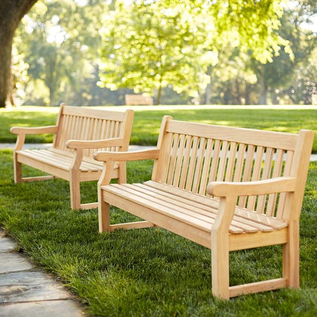 These Royal benches are made from either Roble or Teak – Alexander Roses most durable timbers. The designs are chunky, sturdy and inviting for a long natter with a friend. We have 3, 4, 5 and 6 seater options. Roble and Teak timbers don’t require treatment and will still have an expected lifespan of 25 years without it. If left to age naturally, your bench will slowly turn a beautiful silvery-grey colour. Or, if you’re keen to preserve the colour, it can be treated with the Alexander Rose Timber Shield to create a protective barrier against water and moisture. Roble is light yellow in colour with a smooth interlocking grain. Teak is a richer honey colour with a bolder grain pattern.
