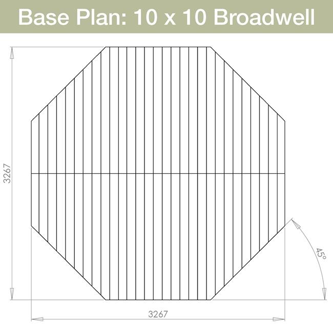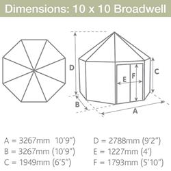 Actual Floor Size: 10ft 9" x 10ft 9" (3287 x 3287mm) Symmetric Octagonal