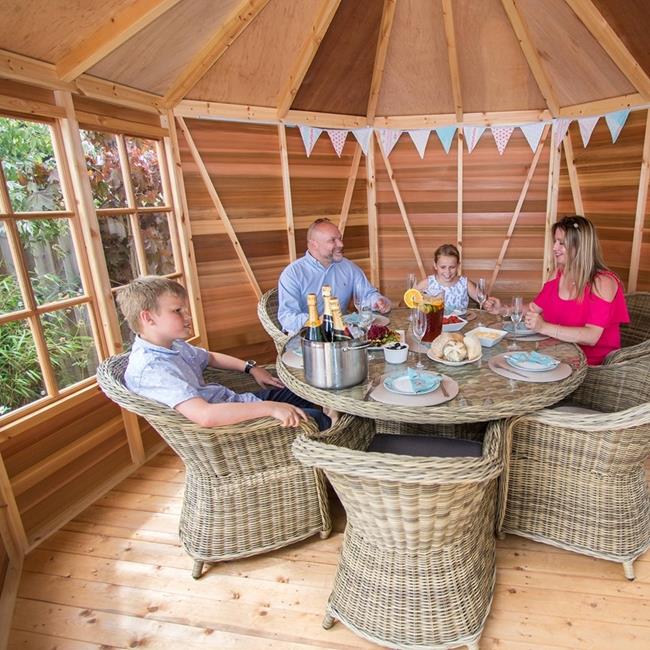 Alton Cedar Summerhouse - Broadwell 10 x 10 Octagonal With Slatted Cedar Roof - Small Georgian Windows