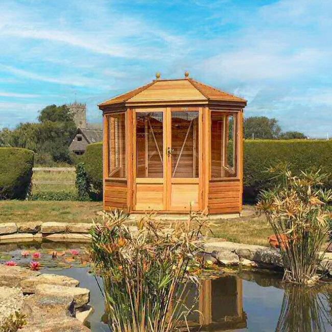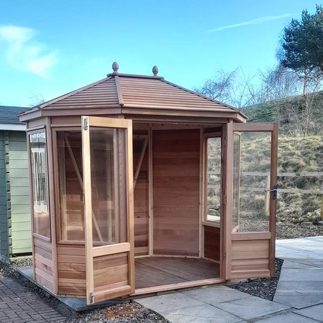 Alton Cedar Summerhouse - Chatsworth 8 x 6 Octagonal With Slatted Cedar Roof - Large Windows
