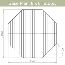 Actual Floor Size: 8ft 2" x 8ft 2" (2508 x 2508mm) Symmetric Octagonal