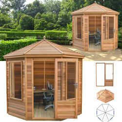 Alton Cedar Summerhouse - Tetbury 8 x 8 Octagonal With Slatted Cedar Roof - Large Windows