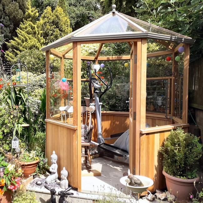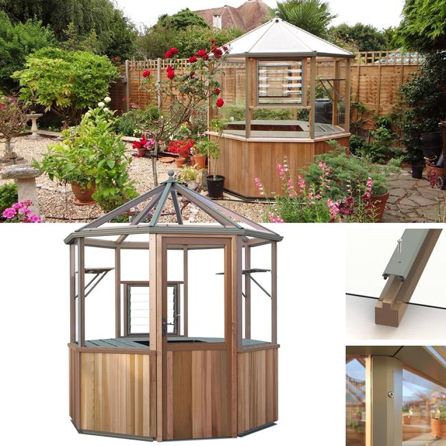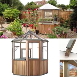 6 x 6 Alton Octagonal - Cedar Greenhouse With Moss Green Aluminium Bar Capping