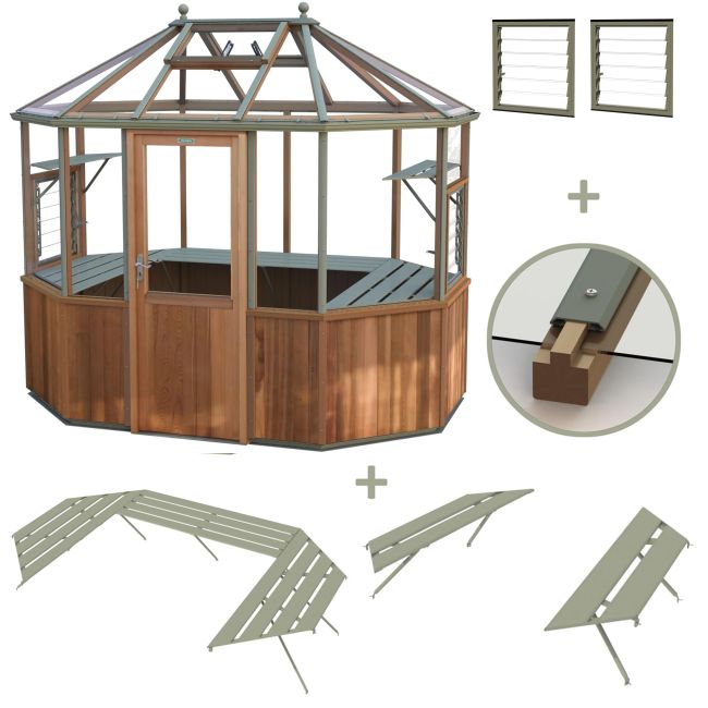 9 x 6 Alton Octagonal - Cedar Greenhouse Ultimate Package